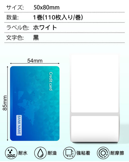 Pesuza 感熱ロール紙 Phomemo M110 M120 M220 対応 純正 50x70mm 110枚 1個 ラベルシール サーマルラベルプリンター用 感熱紙 印刷用紙 再剥離タイプ 業務用 物流PDラベル 強粘 耐水 ホワイト地 黒文字 角丸 マット紙 食品表示ラベル 宛先書き 梱包発送 郵便宛名 名札 整理整頓 名前記載 商品パッケージ 2年保存