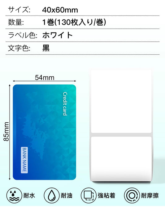 Pesuza 感熱ロール紙 Phomemo M110 M120 M220 対応 感熱ロール紙 純正 40x60mm 130枚感熱用紙 ラベルシール 角丸 マット紙 業務用 強粘着 耐水 ホワイト 黒文字 宛名シール サーマルプリンター用ラベル用紙 ラベルシール 宛名ラベル サーマルプリンター用 感熱シール 整理整頓 郵便 宛名印刷 収納 値札 アドレス オリジナルロゴ 2年保存