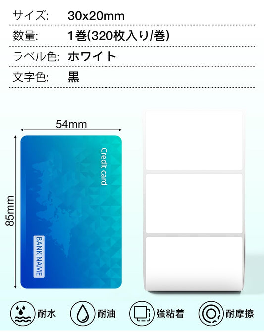 Pesuza 感熱ロール紙 Phomemo M110 M120 M220 対応 純正 30x20mm 320枚入り 感熱ラベル 耐水 角丸 マット紙 強粘着 ホワイト 黒文字 ラベルシール 宛名ラベル 冷蔵庫ラベル サーマルプリンター用 感熱シール 整理整頓 宛名印刷 収納 値札 レーシト アドレス オリジナルラベル 2年保存「3個セット」