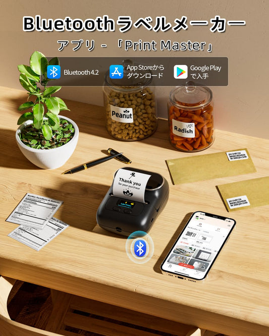 Pesuza M110 ラベルライター ラベルプリンター qrコードプリンター スマホ PC対応 ラベルメーカー スマホプリンター 値札プリンター バーコードプリンター 領収書印刷 アドレス 宛名書き 食品表示 郵便宛名 梱包発送 整理整頓 配送ラベル 業務用 家庭用 Bluetooth接続 充電式 AndroidとIOS適応 20mmから50mmまでの幅 3個セット 40x30付属 ブラック