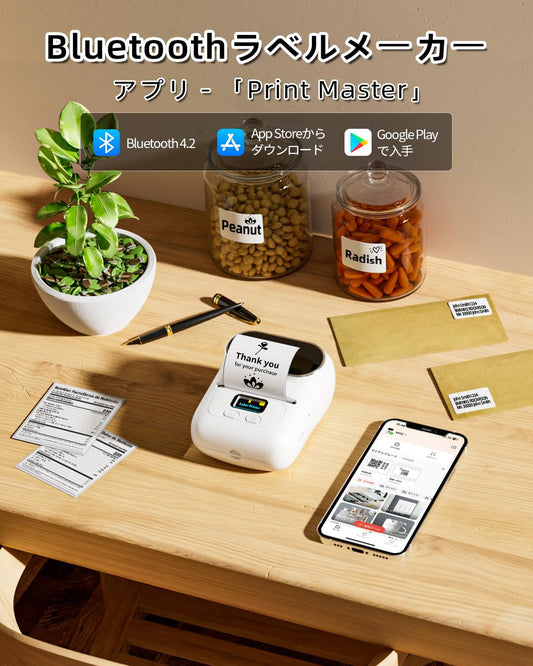 ラベルプリンター Pesuza M110 スマホ PC対応 宛名ラベルプリンター ラベルライター シールプリンター バーコードプリンター スマホプリンター qrコードプリンター サーマルラベルメーカー 充電式 中小企業用 Bluetooth接続 宛名 領収書 食品表示 アドレス 郵便 整理整頓 幅20mmから50mmまで 黒文字 AndroidとIOS適応 連続印刷 ホワイト 40x30ラベル付き