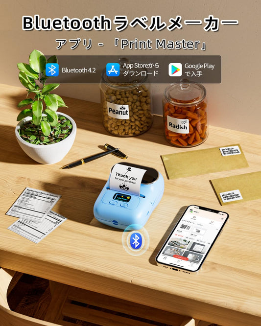 Pesuza M110 ラベルプリンター スマホ PC対応 宛名ラベルプリンター ラベルライター シールプリンター スマホプリンター バーコードプリンター qrコードプリンター サーマルラベルメーカー 充電式 中小企業用 Bluetooth接続 宛先 包装シール 目印 食品表示 値札 アドレス 郵便 幅20mmから50mmまで 黒文字 AndroidとIOS適応 40x30付属 3個入り ブルー